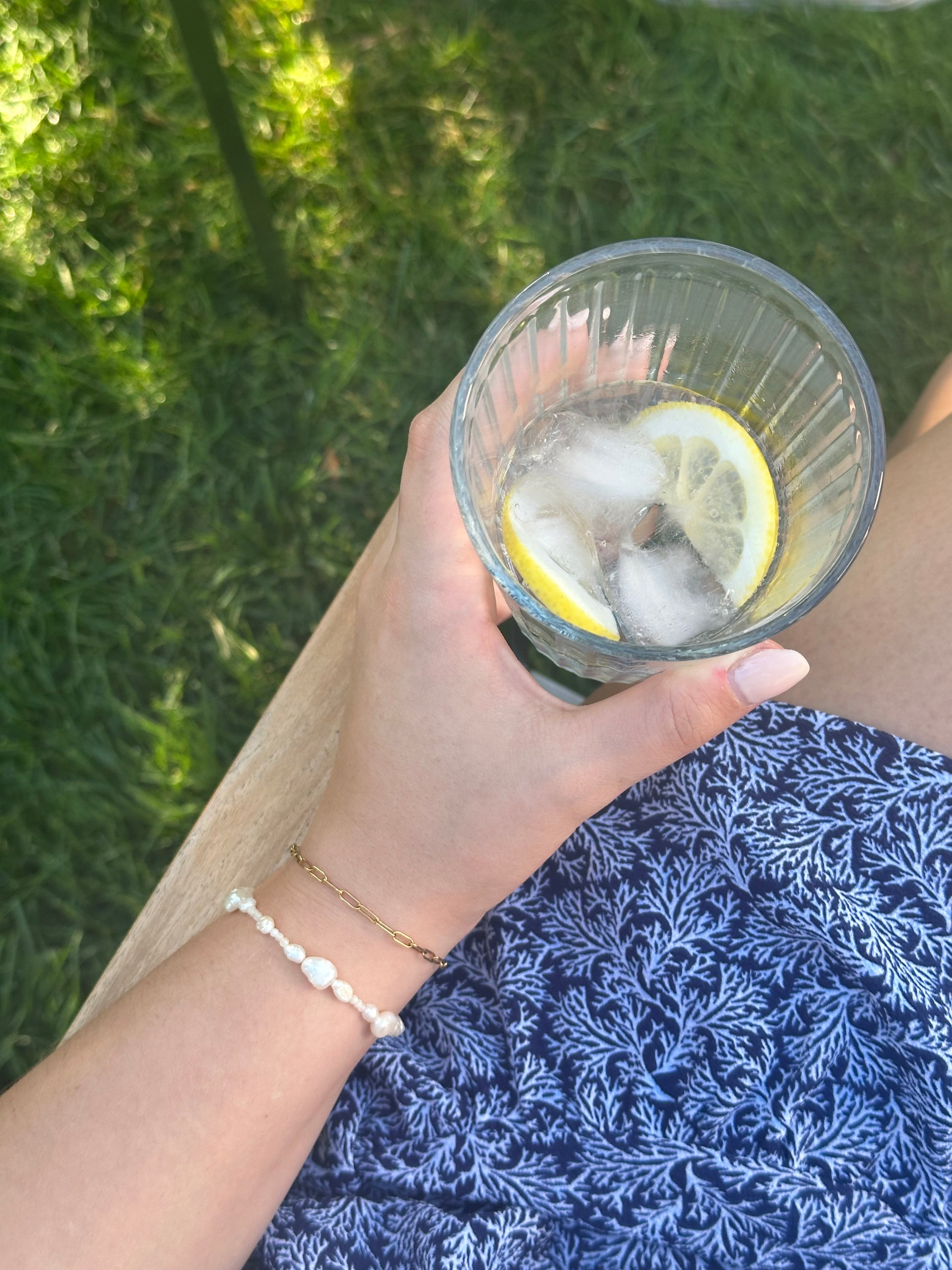 Die Materialien der Kette sind wasser- und hautverträglich. Um dein Schmuckstück jedoch lange genießen zu können, vermeide den Kontakt mit Chlor- und Salzwasser, da diese die Perlen beschädigen und sie somit ihren Glanz verlieren.