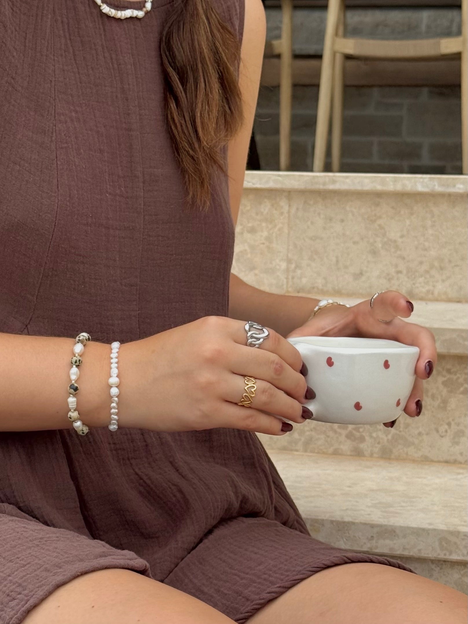 Die perfekte Kombination aus Süßwasserperlen und Natursteinperlen. Mit der Trendfarbe braun machst du diesen Sommer nichts falsch und kannst es perfekt mit jedem Outfit kombinieren.