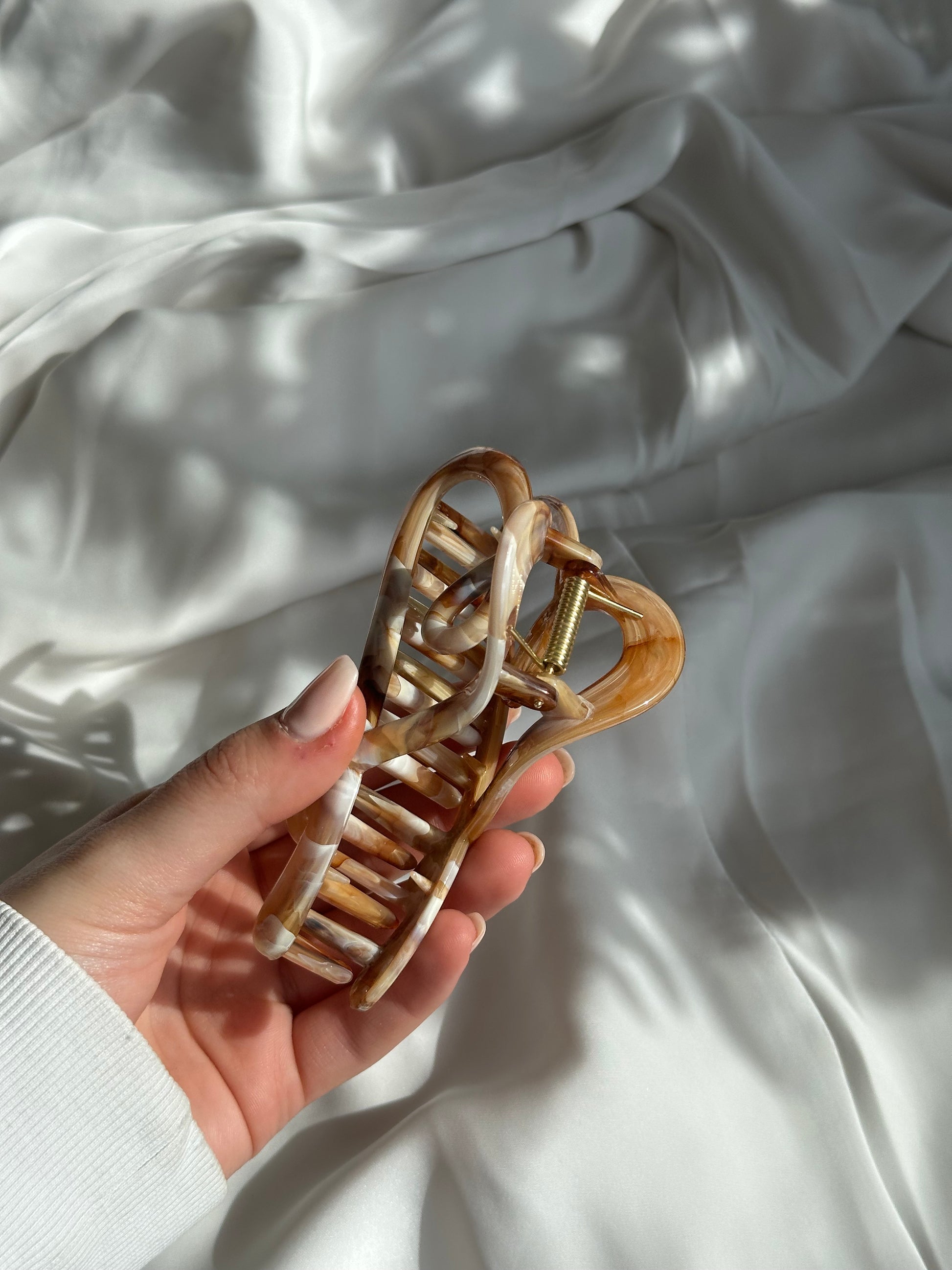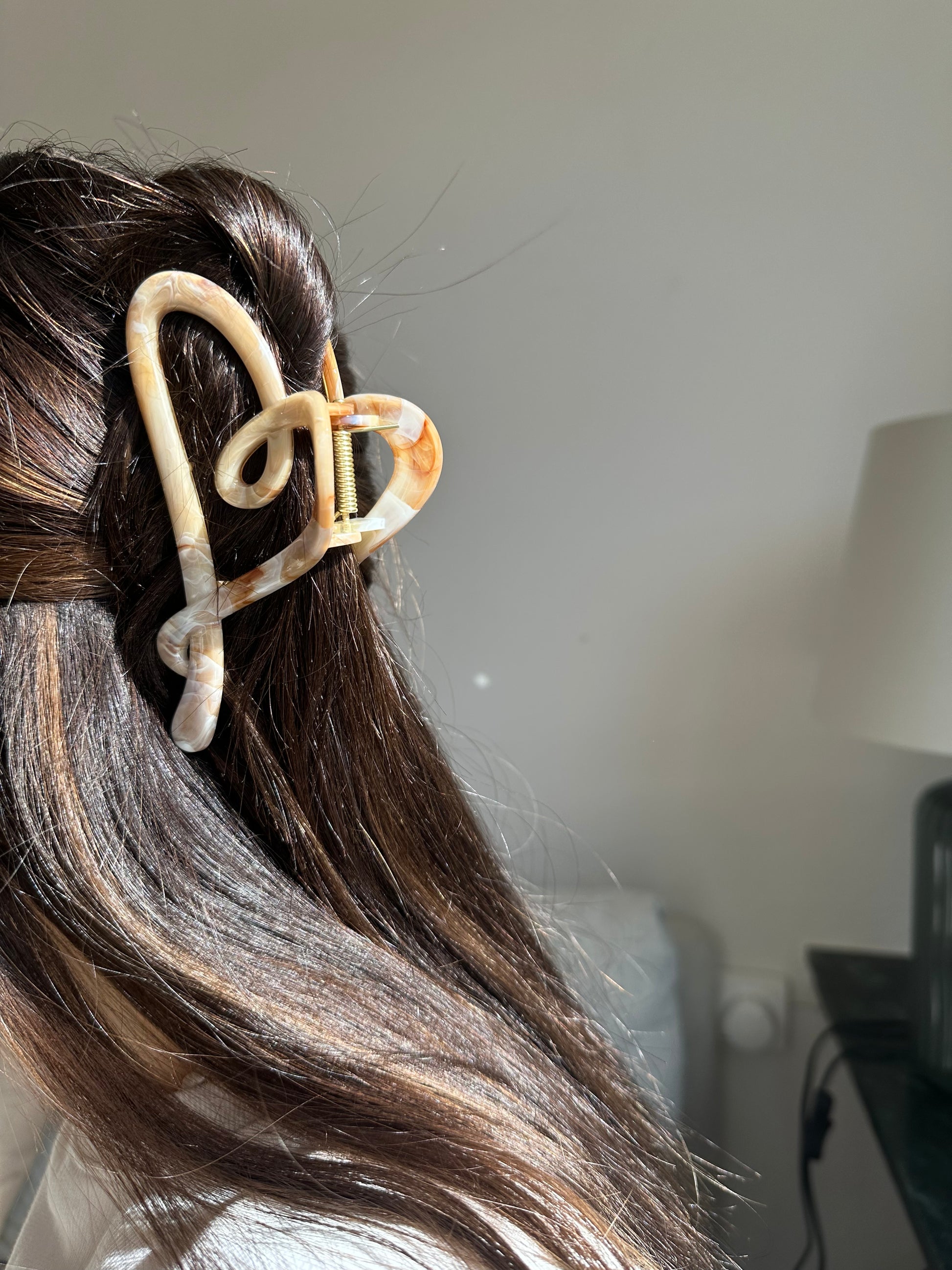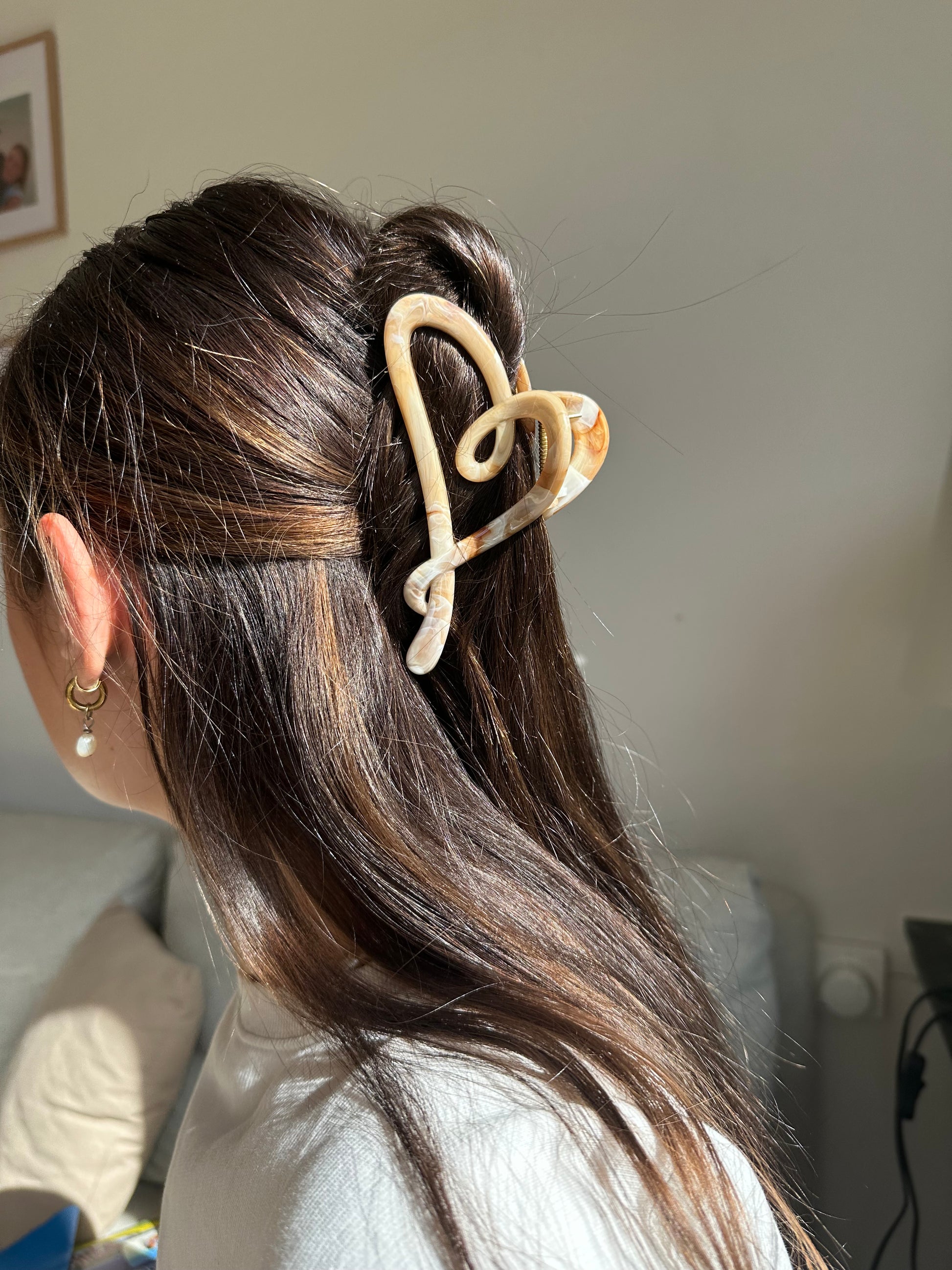 cute und stylisch! Die Haarspange hält sowohl dickes als auch dünnes Haar. Sie besteht aus recyceltem hart Plastik und ist mit ihren dezenten Brauntönen die perfkte Ergänzung zu jedem Outfit!