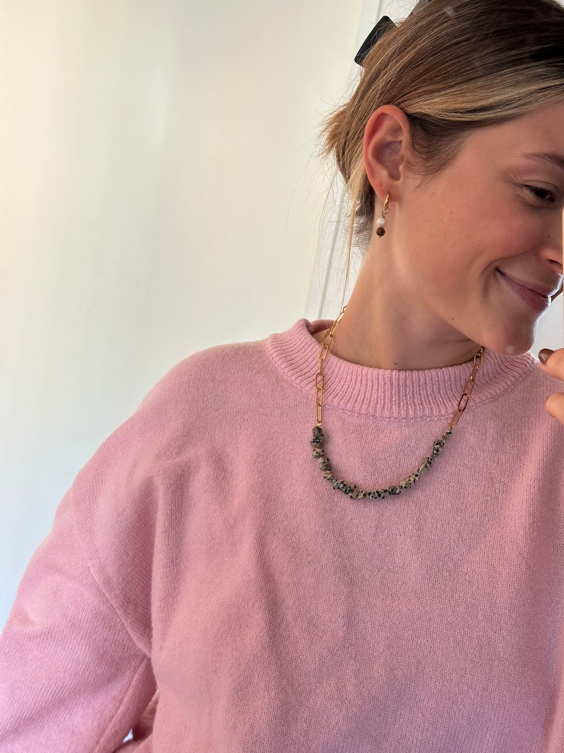 Die Materialien der Kette sind wasser- und hautverträglich. Um dein Schmuckstück jedoch lange genießen zu können, vermeide den Kontakt mit Chlor- und Salzwasser, da diese die Perlen beschädigen und sie somit ihren Glanz verlieren.
