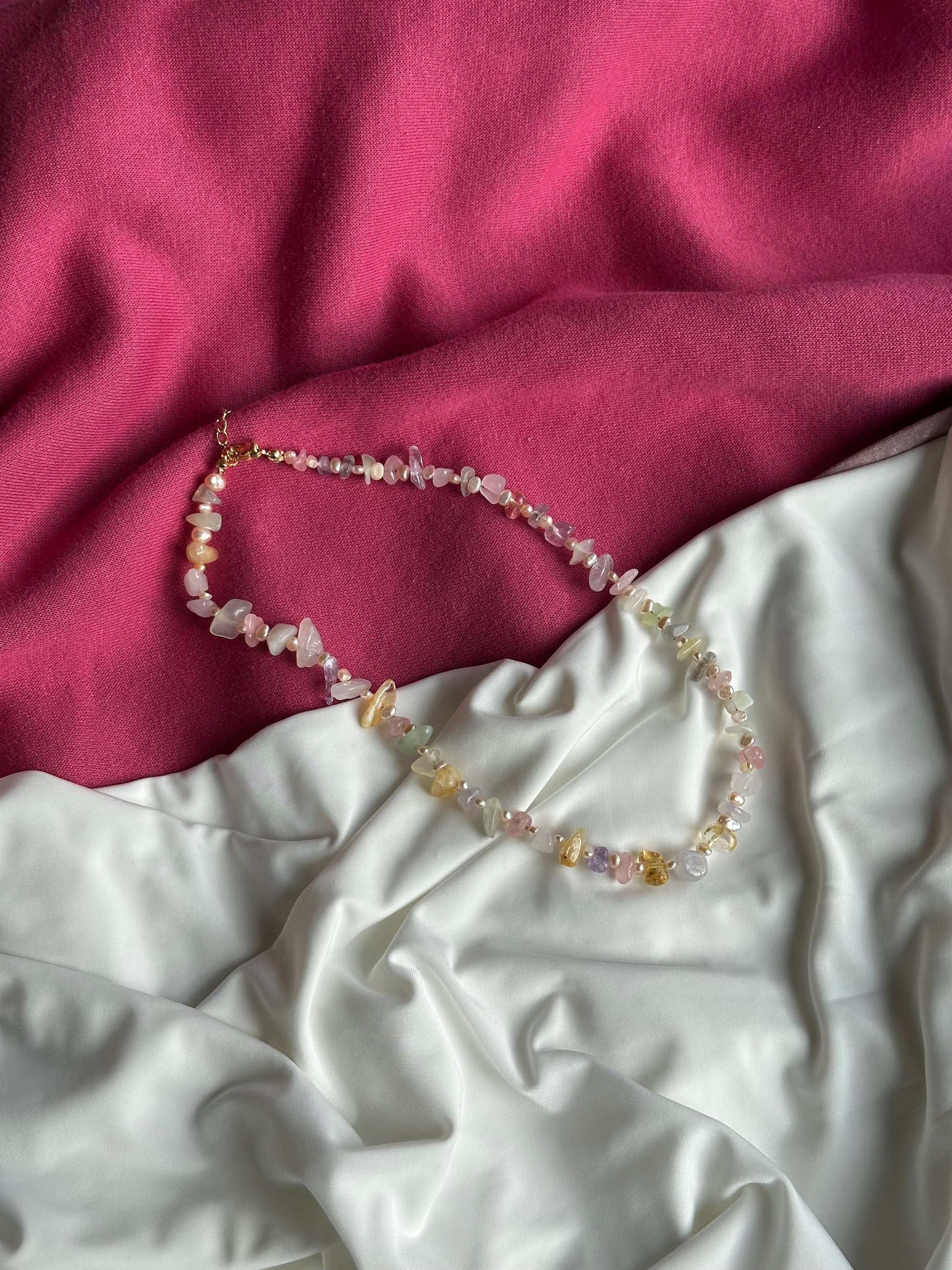 Die Materialien der Kette sind wasser- und hautverträglich. Um dein Schmuckstück jedoch lange genießen zu können, vermeide den Kontakt mit Chlor- und Salzwasser, da diese die Perlen beschädigen und sie somit ihren Glanz verlieren.