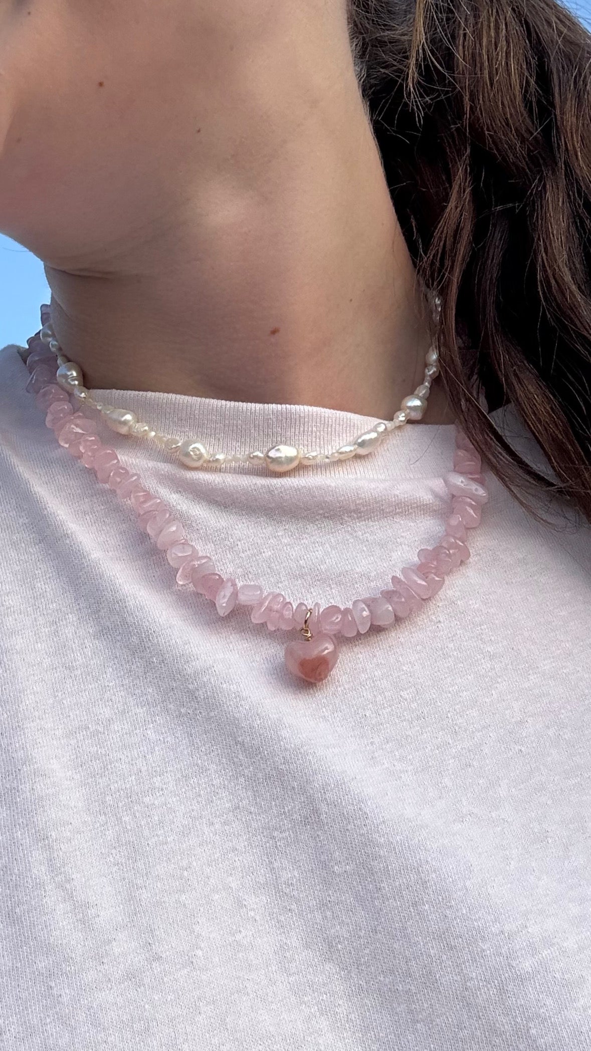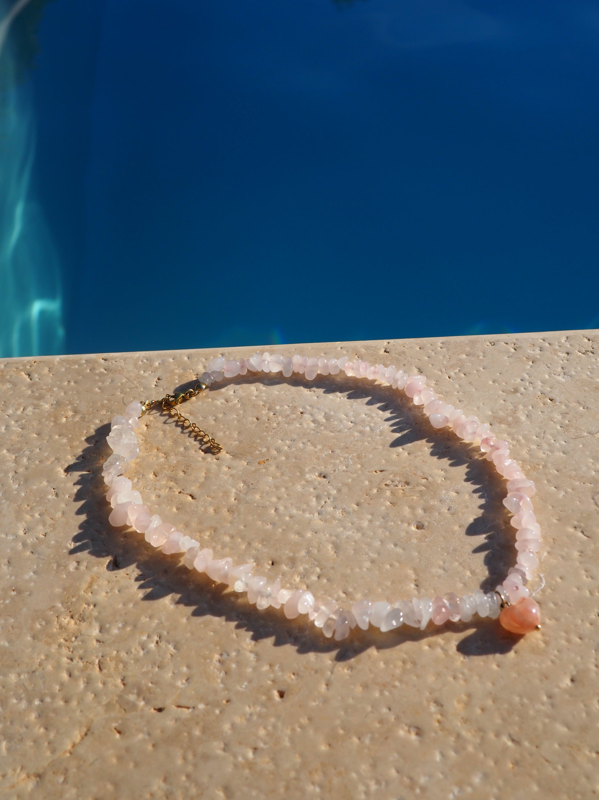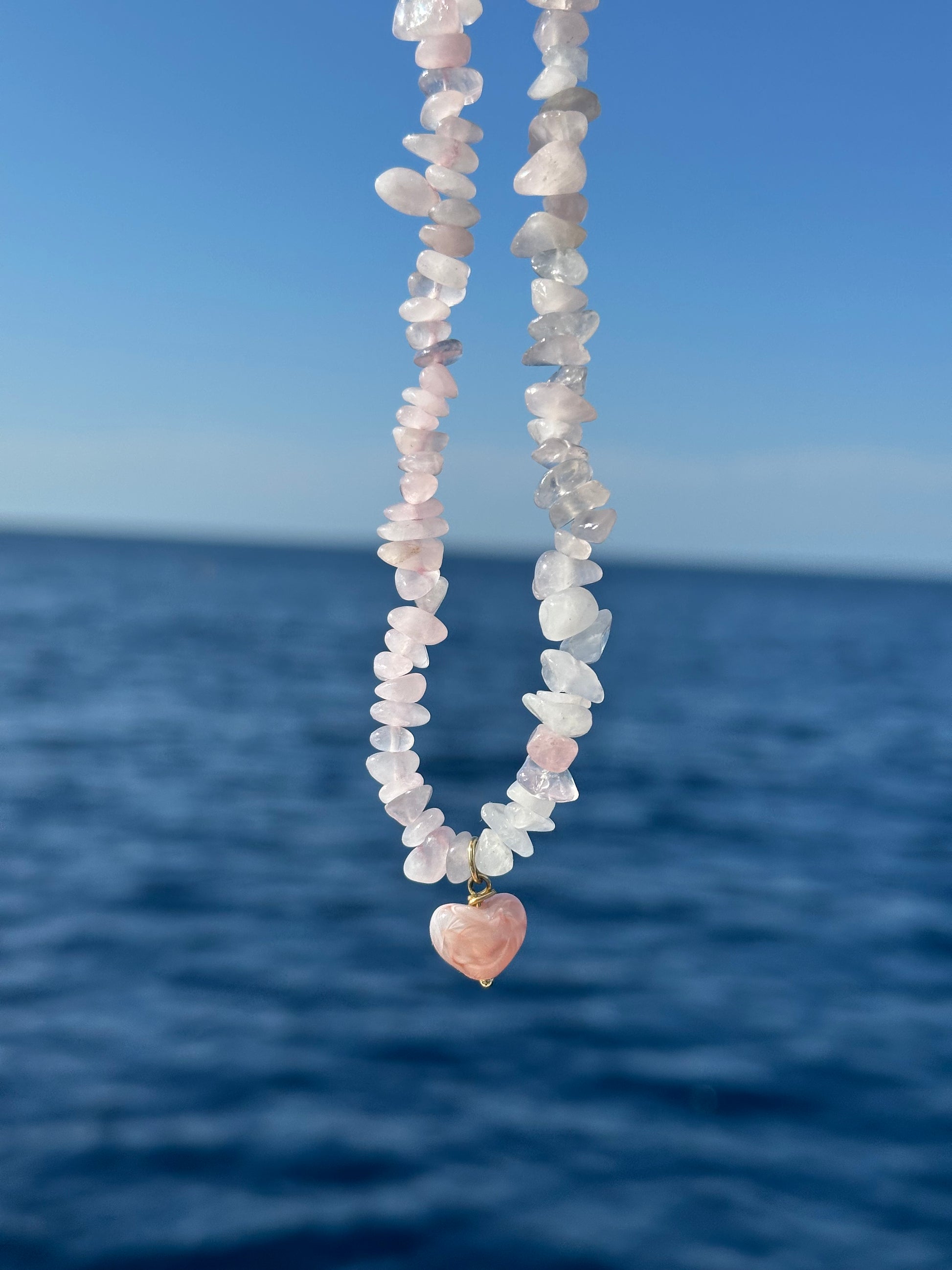 Mit ihren rosa Kristallen und dem Herzanhänger erinnert mich die Kette immer ein wenig an eine Hawaii Kette und somit das ultimative Sommer- und Urlaubsgefühl!