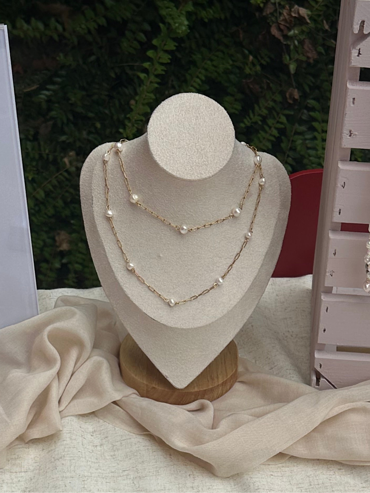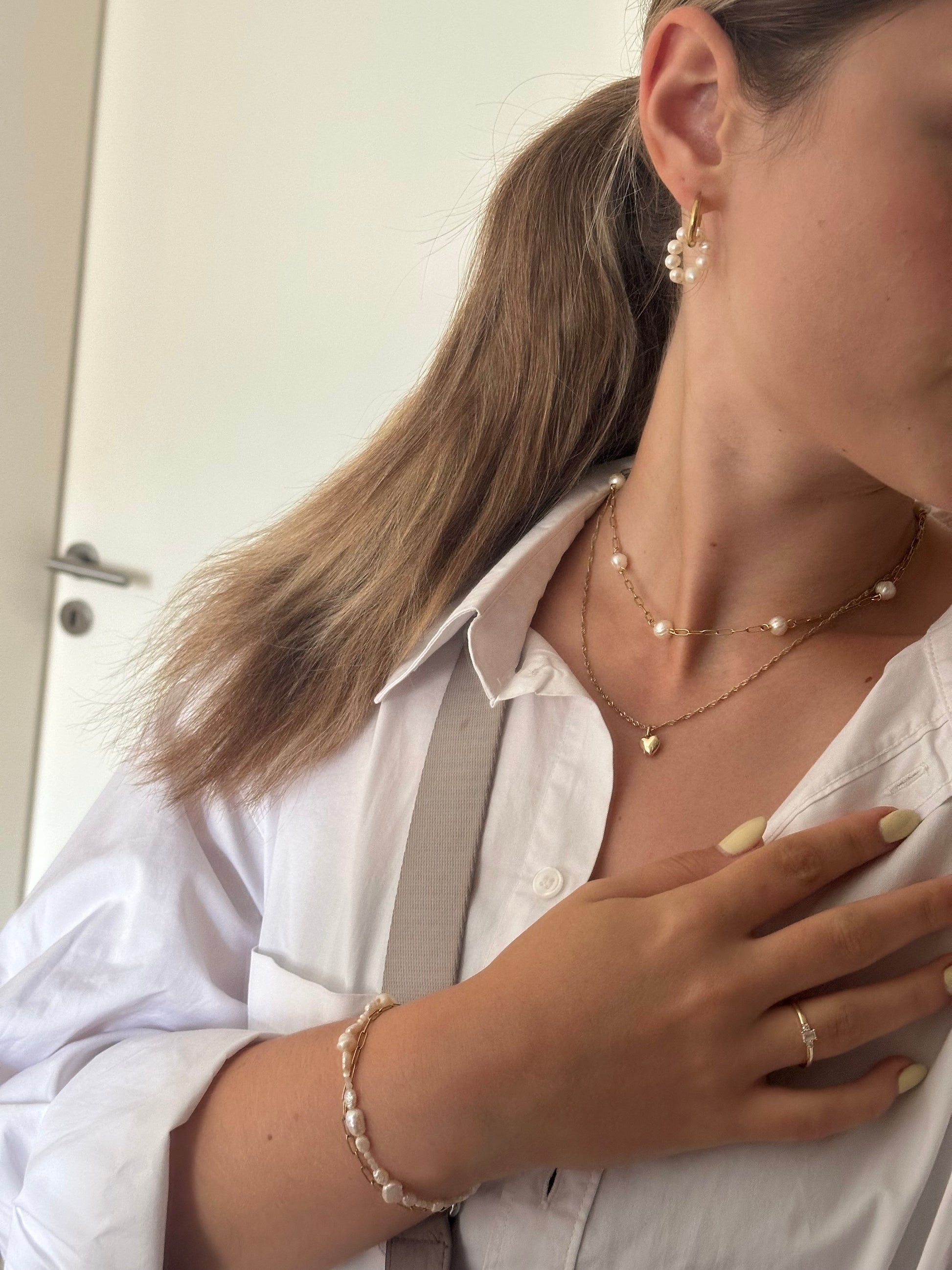 Bei der oberen Kette handelt es sich um die großen Perlen & bei der unteren um die kleinen. Die Einzelbilder zeigen die Kette mit den großen Perlen. Weitere Bilder folgen noch🫶🏼