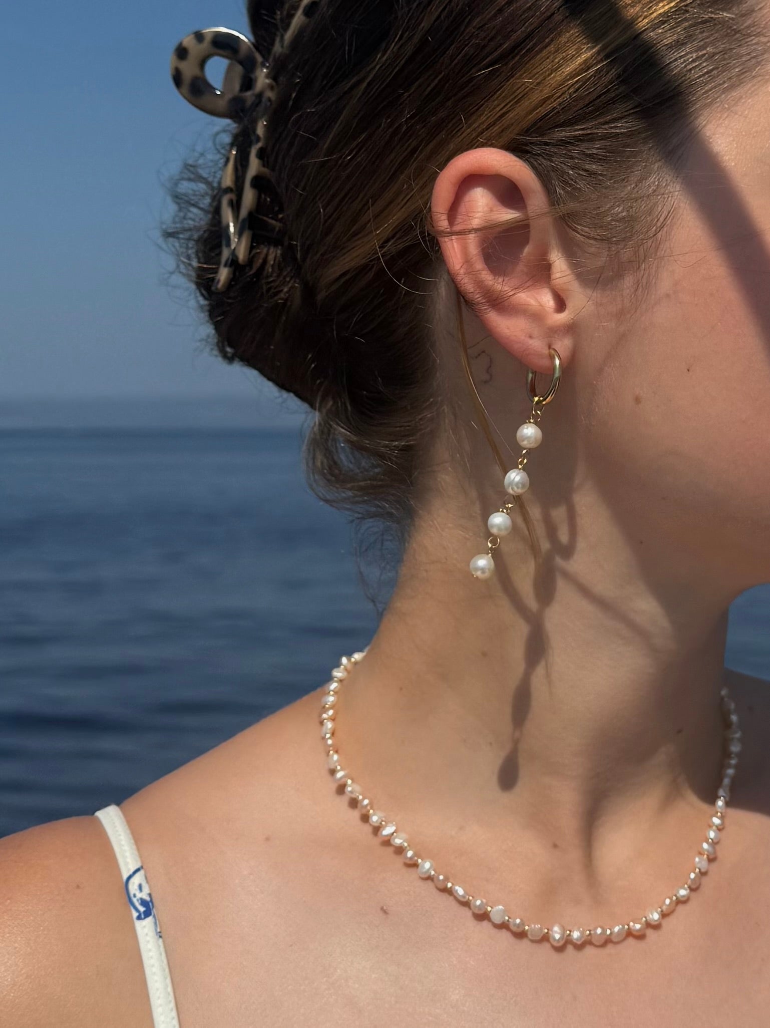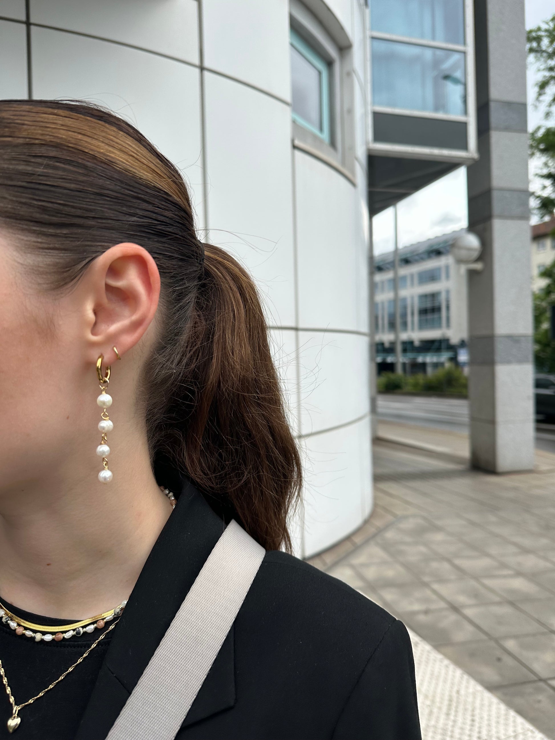 Die Materialien der Kette sind wasser- und hautverträglich. Um dein Schmuckstück jedoch lange genießen zu können, vermeide den Kontakt mit Chlor- und Salzwasser, da diese die Perlen beschädigen und sie somit ihren Glanz verlieren.