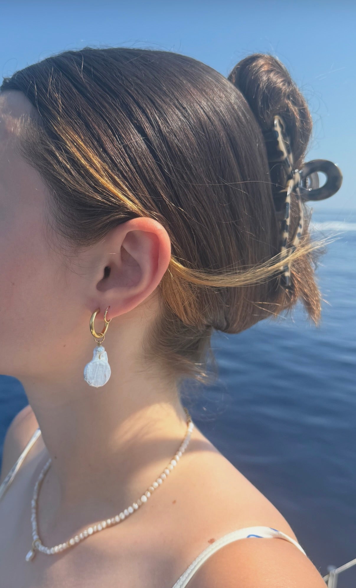 Die Materialien der Kette sind wasser- und hautverträglich. Um dein Schmuckstück jedoch lange genießen zu können, vermeide den Kontakt mit Chlor- und Salzwasser, da diese die Perlen beschädigen und sie somit ihren Glanz verlieren.