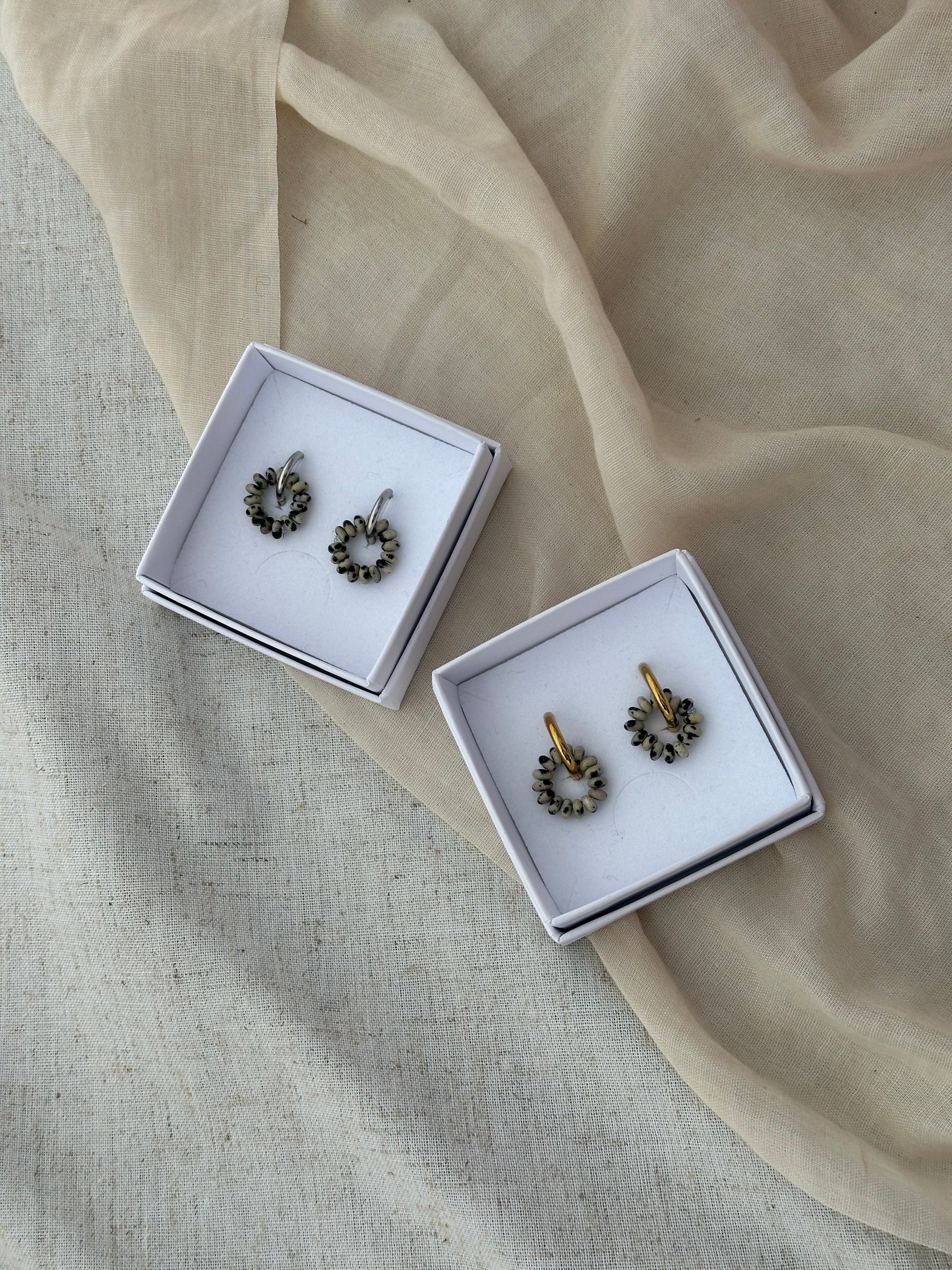 Die Materialien der Ohrringe sind wasser- und hautverträglich. Um dein Schmuckstück jedoch lange genießen zu können, vermeide den Kontakt mit Chlor- und Salzwasser, da diese die Perlen beschädigen und sie somit ihren Glanz verlieren.